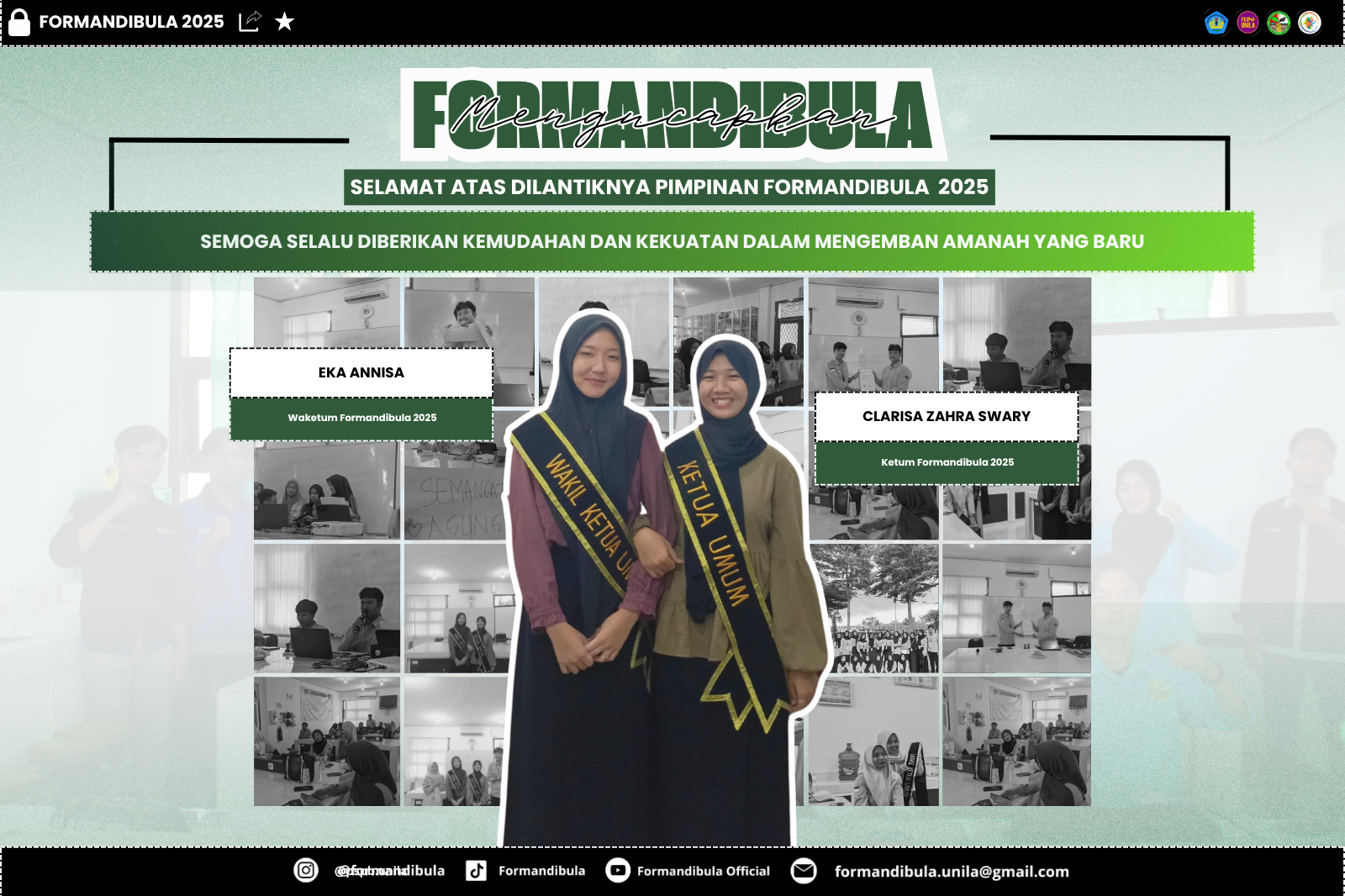 Dengan terpilihnya Clarisa Zahra Swary dan Eka Annisa, diharapkan Formandibula dapat menjadi organisasi yang lebih maju, solid, dan terus menjadi inspirasi bagi mahasiswa pendidikan biologi di Lampung. Selamat kepada Clarisa dan Eka, semoga kepemimpinan kalian membawa perubahan positif dan kemajuan bagi seluruh anggota Formandibula.
