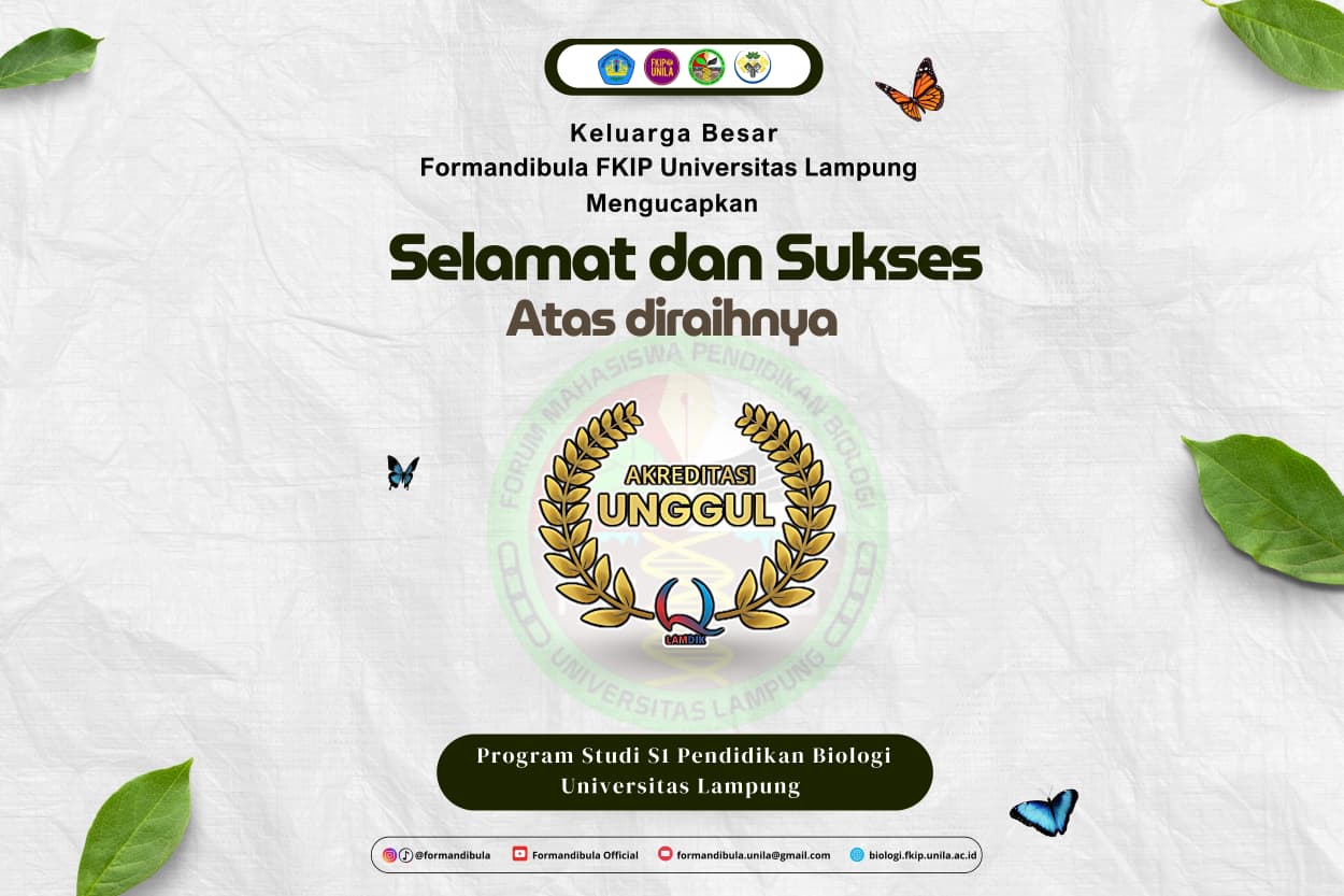 Pencapaian gemilang ini patut diapresiasi. Selamat kepada seluruh dosen, mahasiswa, tenaga kependidikan, dan alumni Program Studi Pendidikan Biologi Unila atas kerja keras dan dedikasinya. Semoga predikat ini semakin memperkokoh langkah menuju tercapainya visi Unila sebagai universitas yang unggul, kompetitif, dan berdaya saing global.