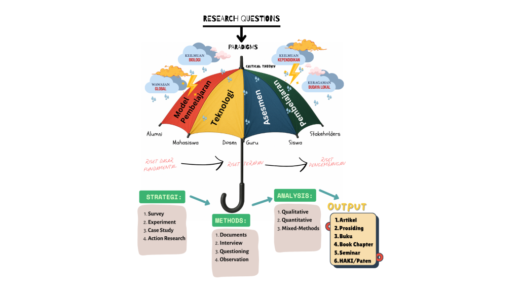 Informasi lengkap mengenai roadmap, tema riset unggulan, serta panduan pengajuan hibah internal dan eksternal dapat diakses melalui menu “Penelitian & Pengabdian” pada laman resmi Prodi Pendidikan Biologi FKIP Unila.